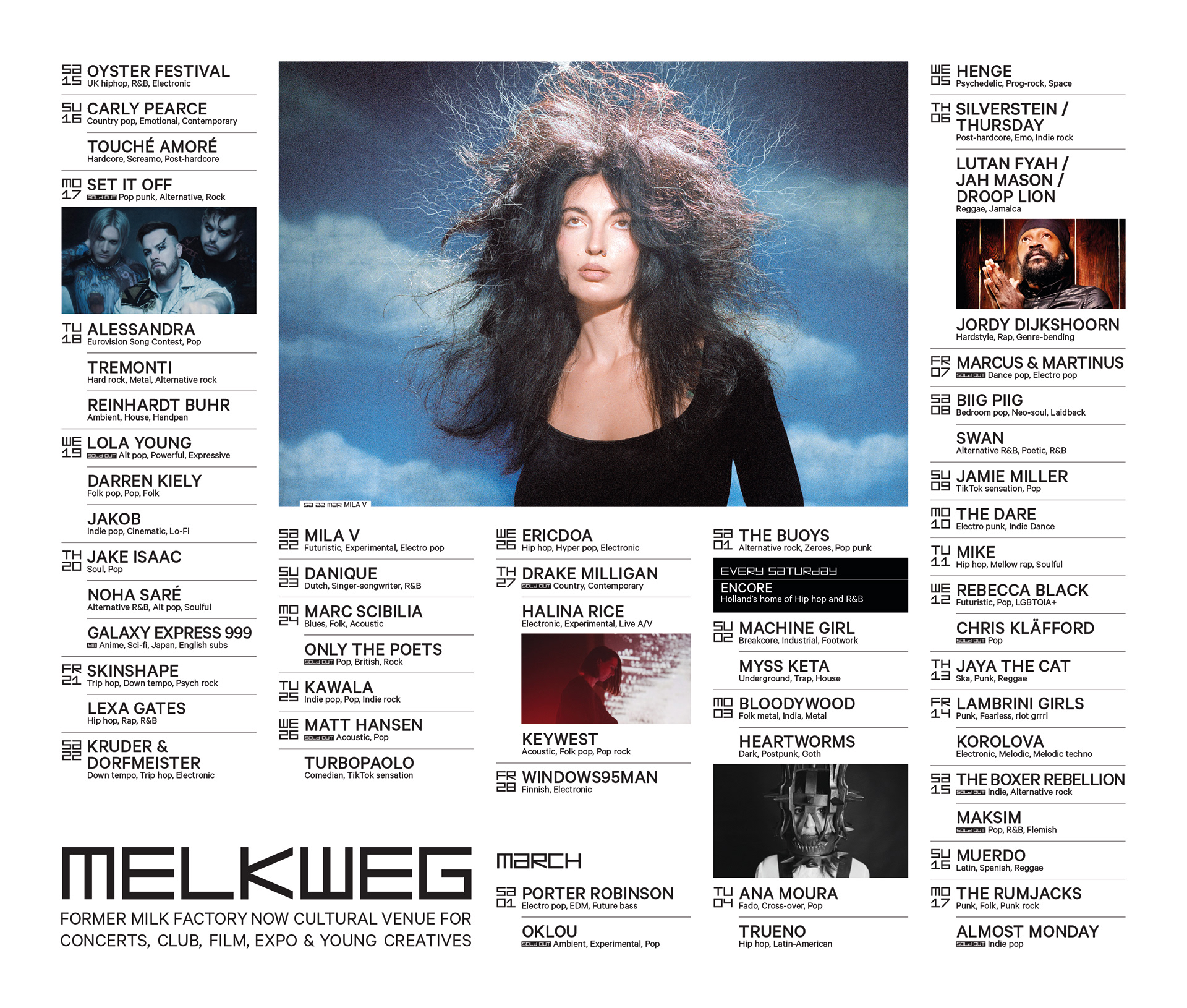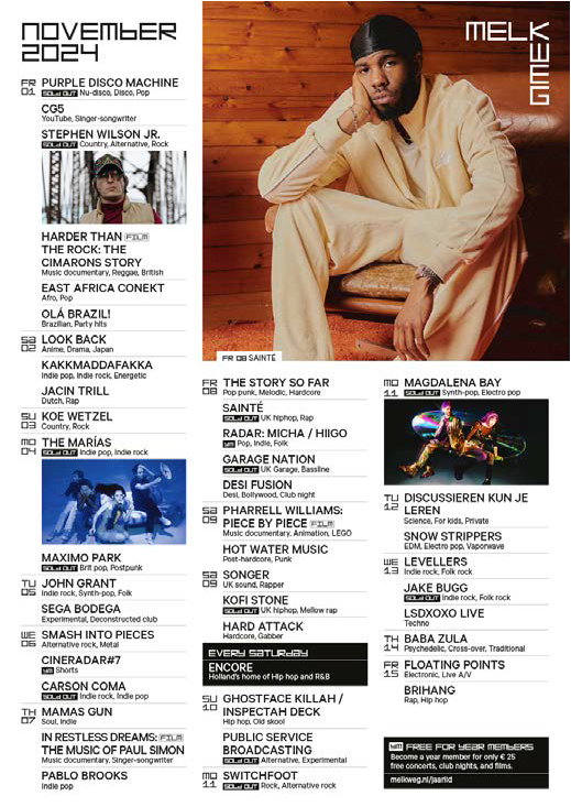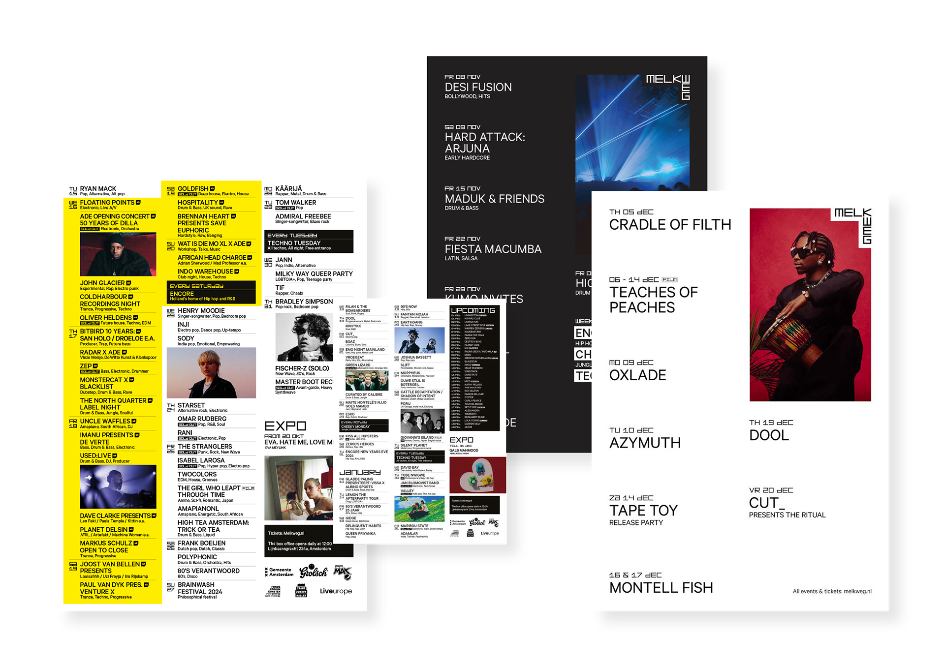 Tijdens mijn stage bij de Melkweg heb ik vanalles gemaakt. Van drukwerk en social media content tot bouwhek spandoeken.